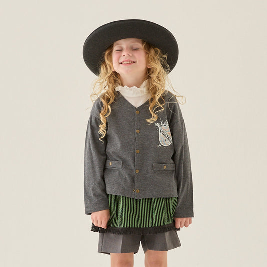 [eLfinFolk] LIBERTAS Emblem Cardigan dark gray