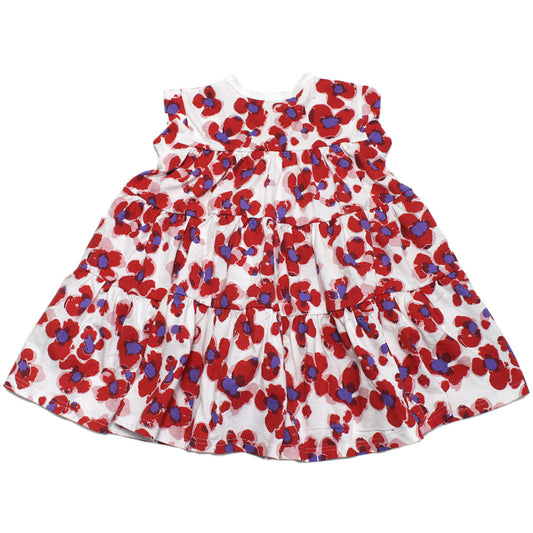 [maarook] Kids Pansy Print Tiered Dress Red