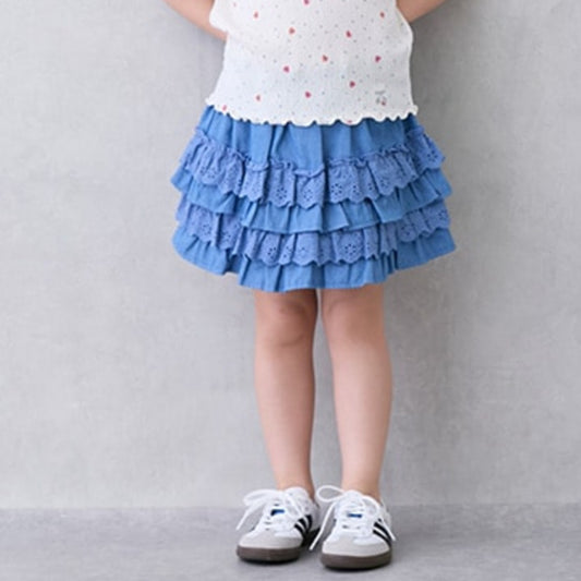 [petit main] Lace Frill Skirt Blue