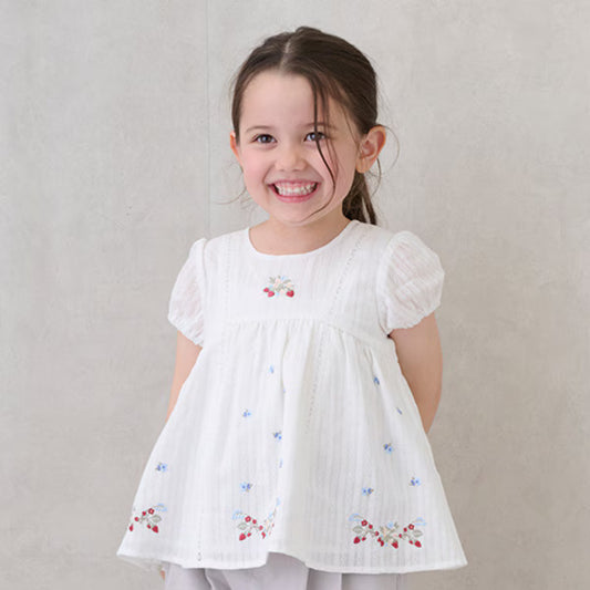 [petit main] Kids Strawberry Puff Tunic Ivory