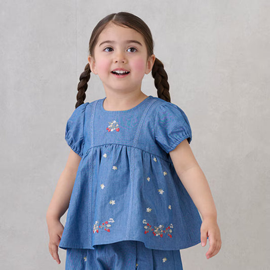 [petit main] Kids Strawberry Puff Tunic L Blue