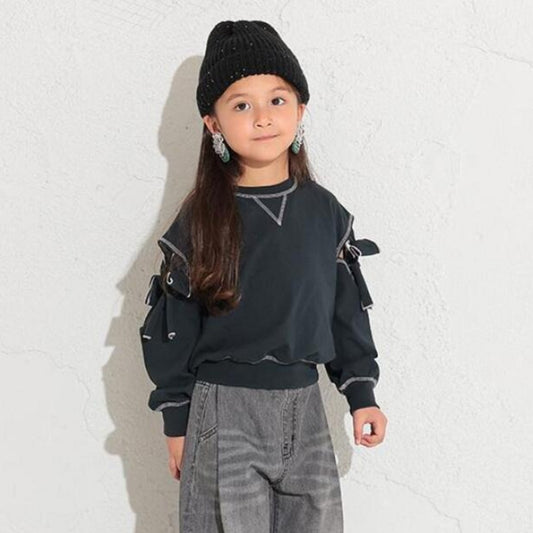 [Ocean&Ground] Open shoulder ribbon T-shirt Black (BK)